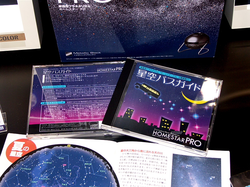 さて日頃からカガクノトビラを応援して下さっている皆様に嬉しいお知らせです!そう、PROに付属の星空解説CDはカガクノトビラが企画制作を行った「星空バスガイド」なのです〜、パチパチパチ!ナレーションはもちろん我らが土屋亜有子さん。今日の会場では機器の手配の関係で聞けなかったのですが、明日からは展示場所(デモスペース?)で流す予定とのことなので、要注目です!内容は、まあタイトル通りですが(笑)、この辺の裏話的なところは追ってレポートしたいと思います。いや、ネタ的に引っ張っているわけではないんですよ〜(笑)。